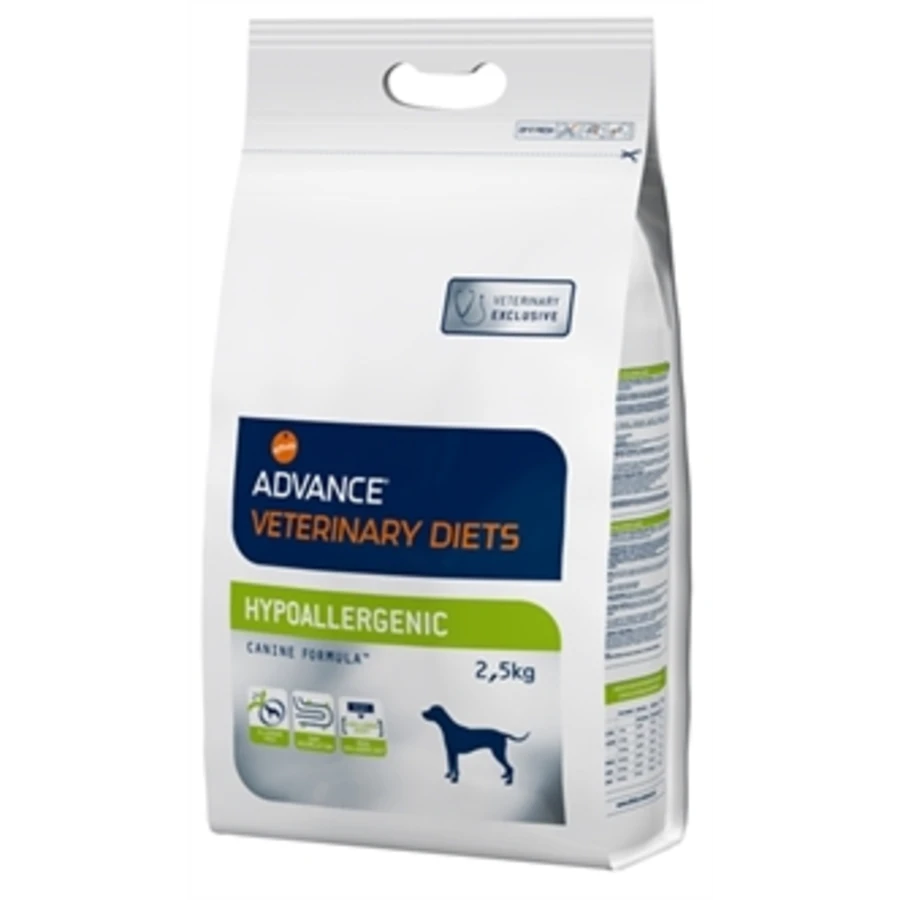 Hond Veterinary Diet Hypo Allergenic iseen compleet (volledig) hypo allergeen dieetvoedingsmiddel voor honden ontwikkeld om allergie voor ingrediënten en voedingstoffen terug te dringen met een geselecteerde eiwitbron en een geselecteerde koolhydraatbron.