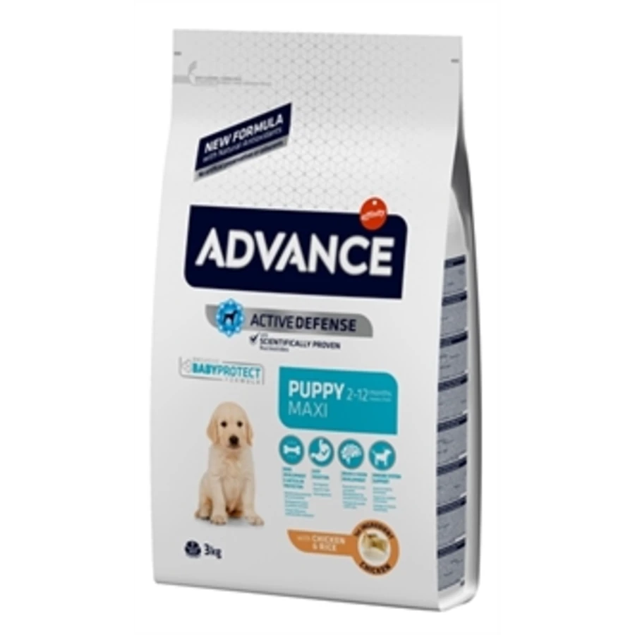 Advance Puppy Protect Maxi is speciaal voer om in de voedingsbehoefte van pups met een volwassen gewicht van meer dan 30 kg.