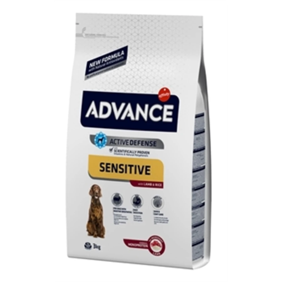 Advance Sensitive Lamb / Rice is een smakelijk hondenvoer met lam speciaal gemaakt voor honden met een gevoelige maag of huidproblemen. Veelal hebben honden met maagproblemen klachten aangaande de vertering en de huid. Dit voer haalt eiwit uit slechts één eiwitbron (lam) en de combinatie met rijst maakt het voer gemakkelijk verteerbaar. Toch bevat het voer alles wat jouw hond nodig heeft, zoals Omega 3 en 6 vetzuren voor een gezonde huid en vacht. Daarnaast zijn de brokken zeer smakelijk, voor een goede acceptatie!