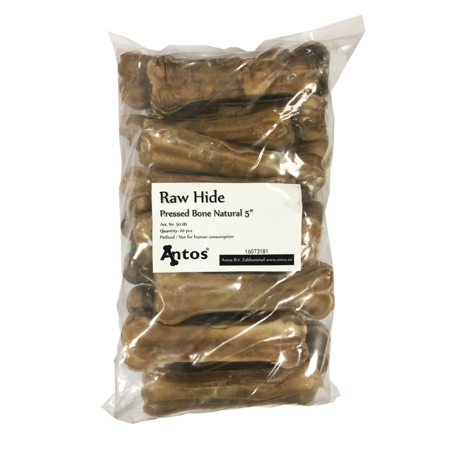 Raw hide Pressed bone is een smakelijke traktatie voor uw hond! Verpakt in een zak van 20 stuks. Ook goed voor het gebit.