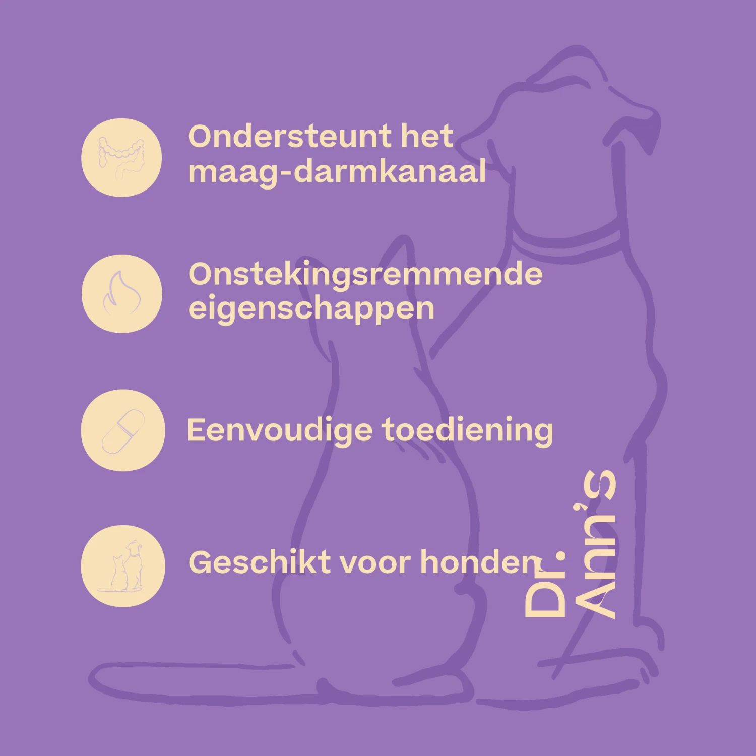 De supplementen van Dr. Ann’s helpen uw huisdier om zo gezond en vitaal mogelijk te blijven. Ontwikkeld door dierenartsen en gebaseerd op de meest actuele veterinaire kennis en onderzoek. Betrouwbare producten met een hoge kwaliteit. Zo weet u zeker dat uw dier de hulp krijgt die het nodig heeft.