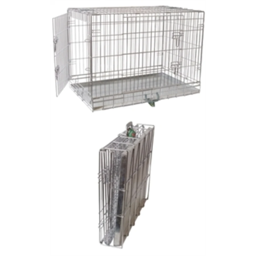 Deze opvouwbare draadkooi met 2 deuren is gemaakt van verzinkt metaal. Hij is voorzien van een metalen lade.