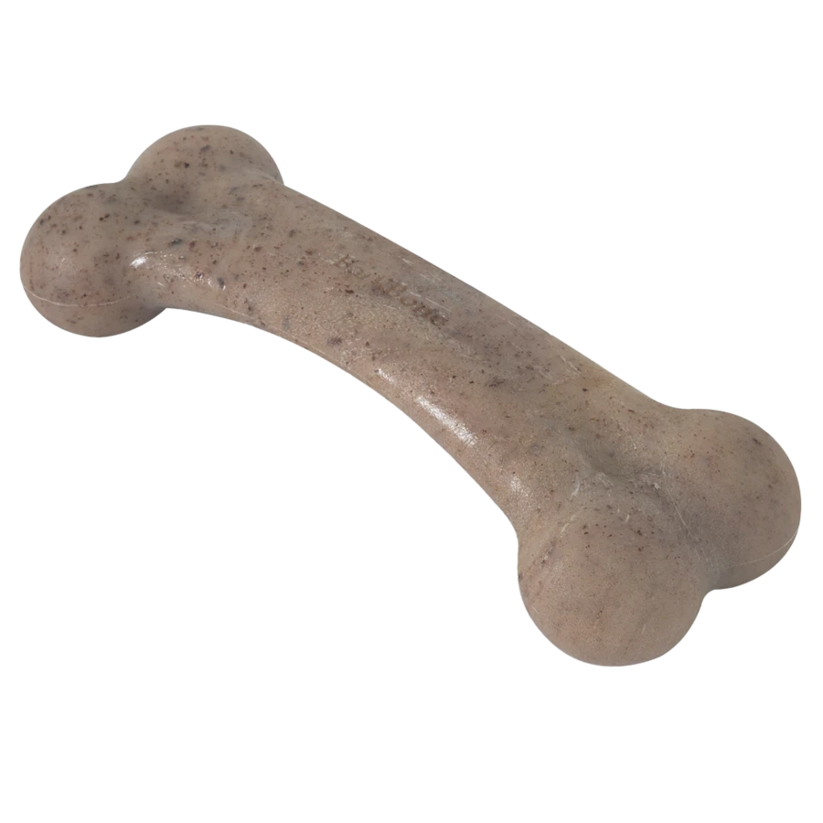 Wees niet verbaasd als er tijdens het kauwen korreltjes nylon vrijkomen. Deze kleine stukjes ter grootte van een rijstkorrel worden meestal niet doorgeslikt; maar als dat wel gebeurt, is dat geen probleem. Voor een bevredigende kauwervaring moet uw hond in staat zijn om enige schade aan te richten aan het kauwmateriaal. De textuur moet krasbaar zijn; niet glashard. Het is belangrijk dat u uw hond altijd in de gaten houdt als er nieuw speelgoed of kauwartikelen worden geïntroduceerd. Hoewel deze zeer duurzaam zijn, is geen enkel hondenspeeltje echt onverwoestbaar. Als uw hond toch stukjes afbreekt, haal het kauwspeeltje dan onmiddellijk weg.