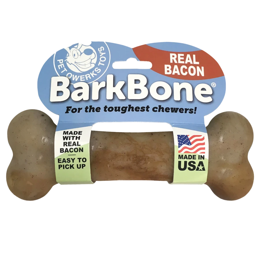 Deze Bacon Barkbone is de duurzame hondenkluif waaraan uw hond meer plezier zal beleven tijdens het kauwen. Deze kluiven zijn gemaakt van puur nylon en echte spekstukjes. De twee ingrediënten zijn gemengd tot de meest duurzame, veilige en smakelijk hondenkauwbotten, zonder toegevoegde kleurstoffen, smaakstoffen of toevoegingen. Doordat het spek, de oliën en de smaak erin zijn verwerkt, komt de smaak vrij zodra een hond erop kauwt.