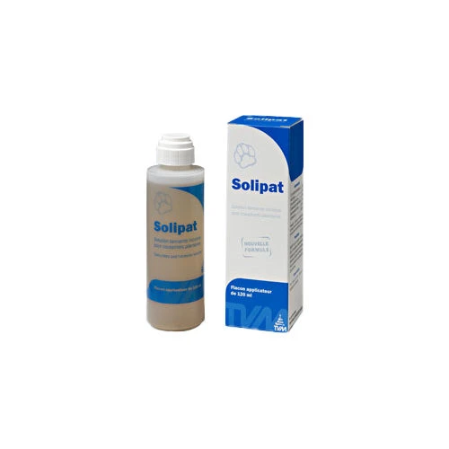 - Maak een voetenbadje door Solipat in een kom te schenken en de zoolkussens in de vloeistof te dippen